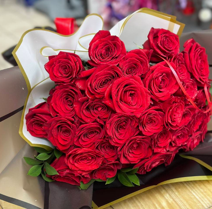 This exquisite Dream Bouquet features 36 premium roses in a beautifully arranged round bouquet. This bouquet is so elegant and wrapped in a fancy paper, creating a luxurious and elegant gift for any occasion. This is indeed a very true statement of love and admiration.