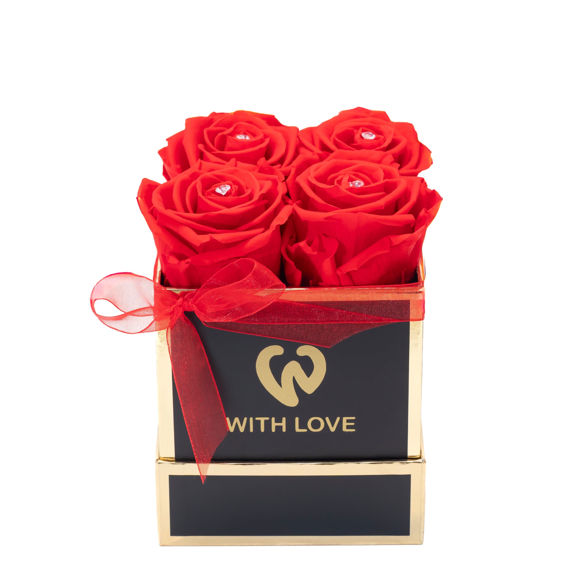 Sweet Blossom is a beautifully arranged set of preserved roses, symbolizing love, connection, and timeless elegance. This arrangement contains four roses nestled in a luxurious box designed to be cherished.