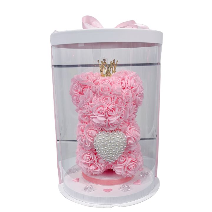 This enchanting rose bear is one that last forever, and is always blooming with love. This rose bear is placed inside an luxurious box that is just showing elegance in style. This arrangement is for sure such a beautiful symbol of affection that never wilts.