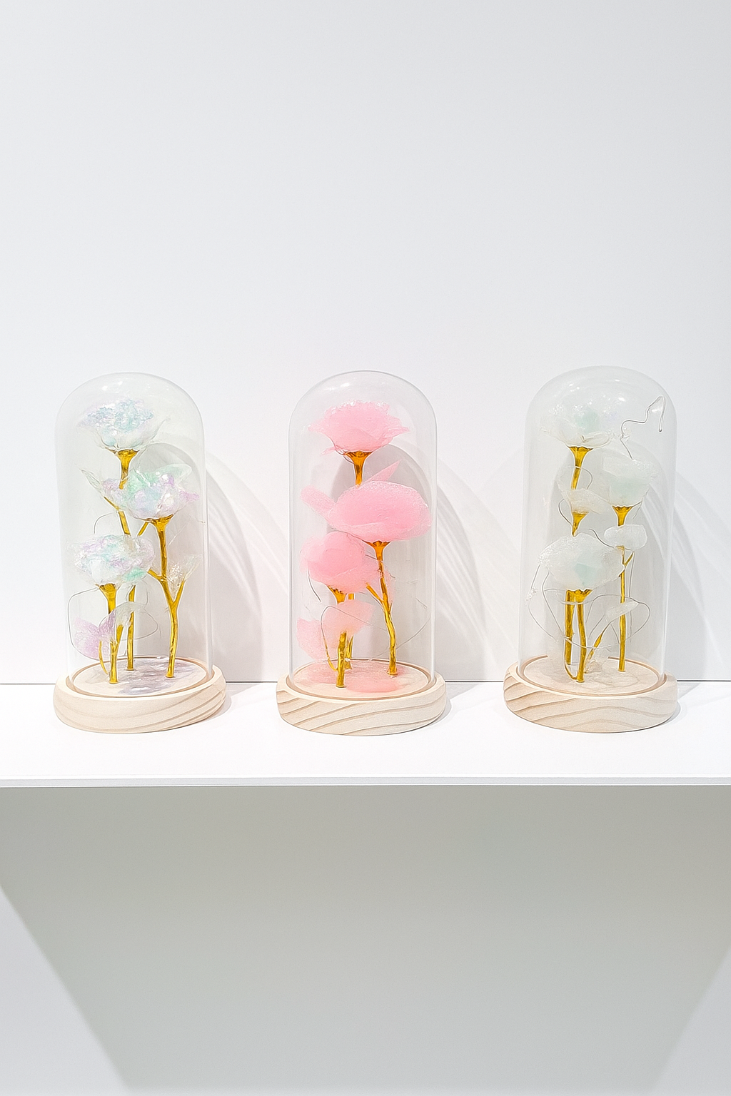 A stunning blend of elegance and wonder, the Galaxy Crystal Rose is designed to capture the beauty of the cosmos in a beautiful keepsake. With shimmering petals that reflect a spectrum of colors—just like a galaxy in bloom—each rose is set to be special for nice memories. The Galaxy Crystal Rose is inside a clear glass dome which makes it a breathtaking gift for anniversaries, birthdays, Valentine’s Day, or simply as a symbol of everlasting love and beauty.