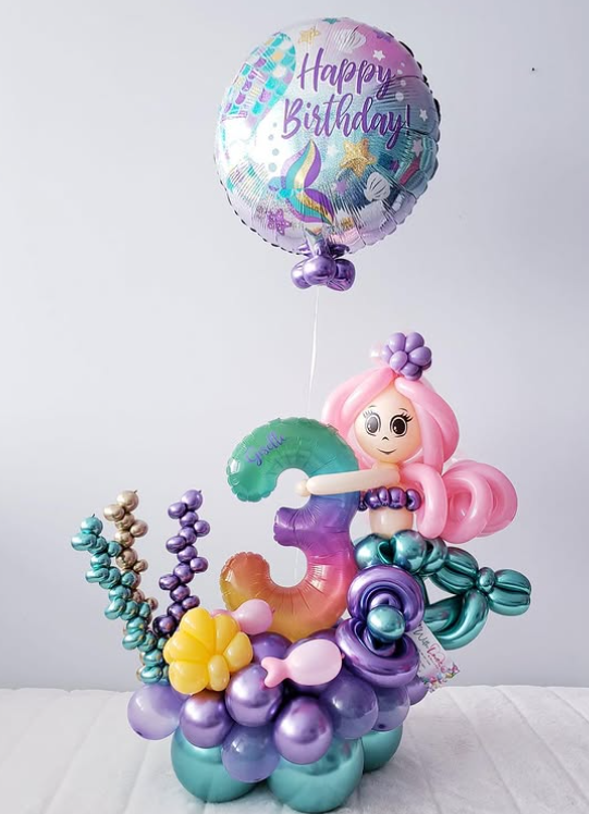 Add a touch of magic to any celebration with our Little Mermaid Bouquet. This enchanting bouquet features whimsical Little Mermaid balloons, perfect for creating an under-the-sea atmosphere. Elevate any party or event with this fun and colorful addition.