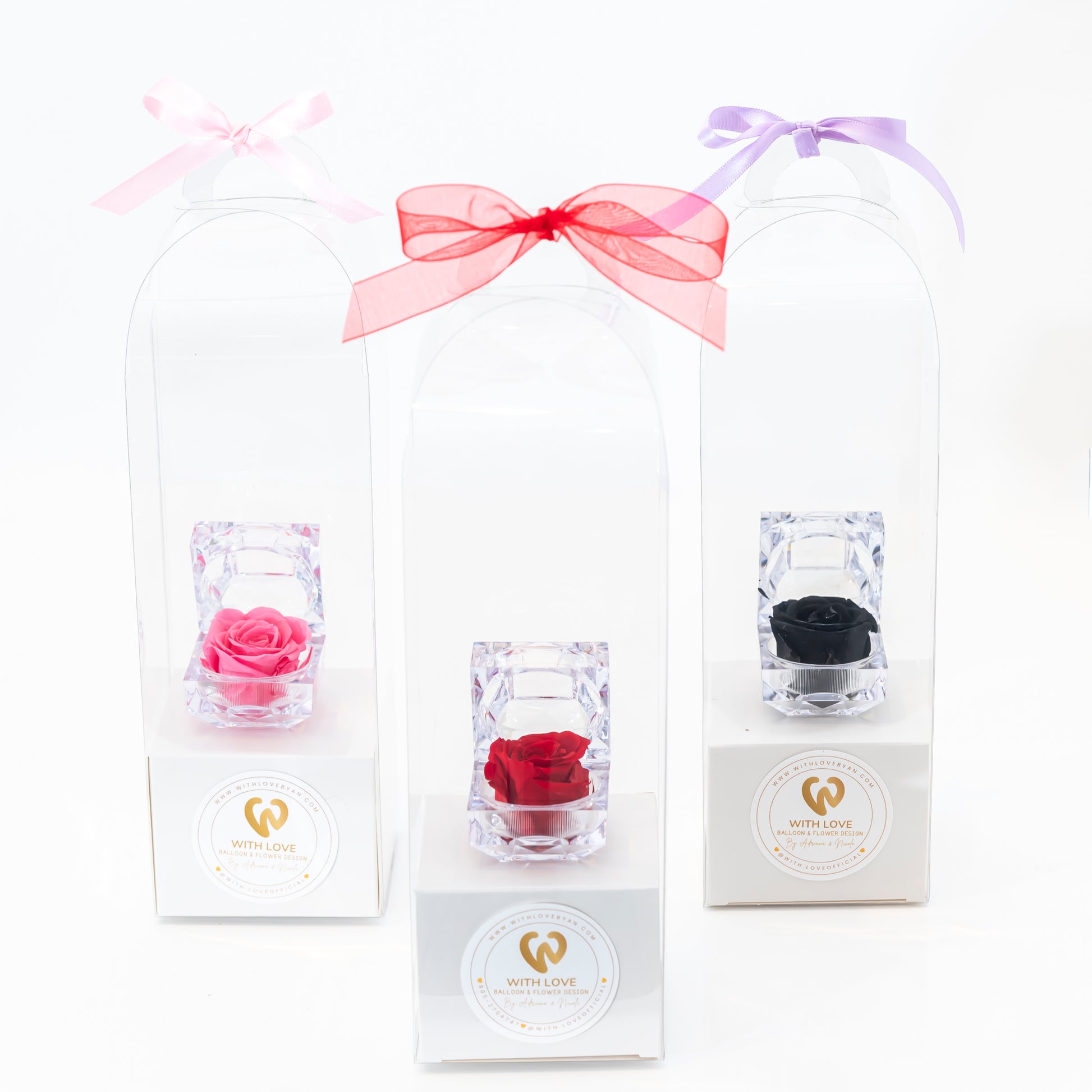 One beautiful Evermore Mini Rose inside a perfect box! This preserved rose is so elegant, it will be the little treasure of the room and atmosphere and to your loved ones! This mini surprise is so gorgeous, it will brighten your day!