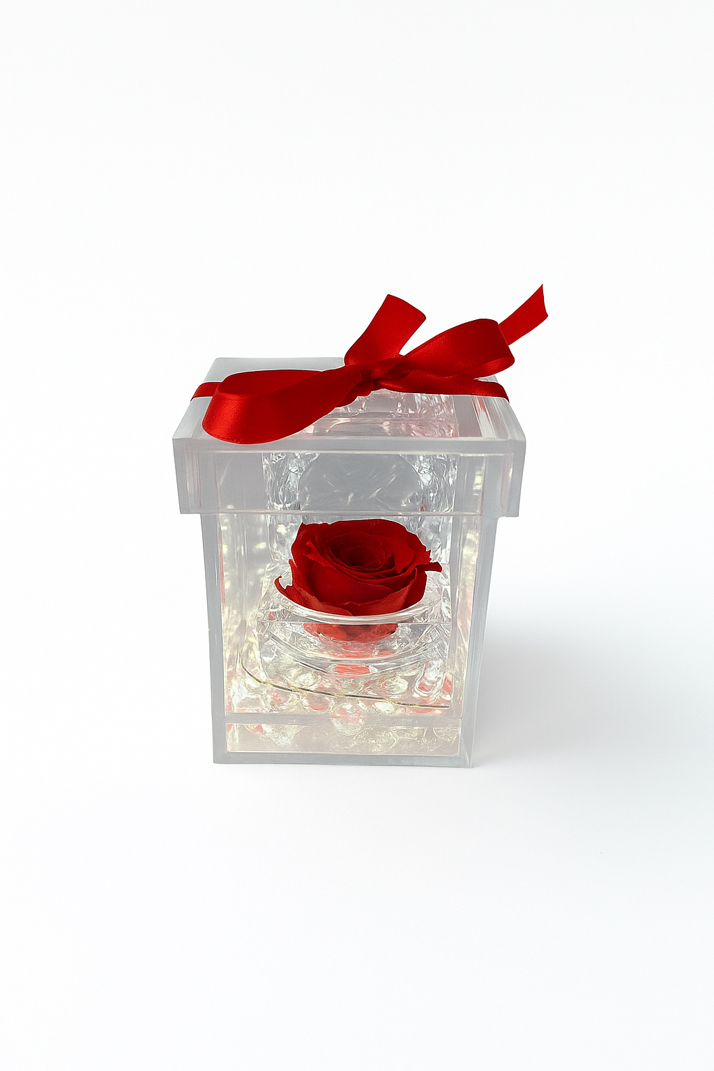 Rose Radiance is a captivating mini preserved rose, elegantly placed in a box and softly lights up with lights! This delicate bloom is designed to last for up 3 years, glowing gently to create a magical, romantic ambiance — day or night.
