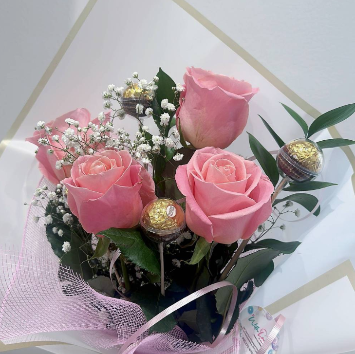 This elegant Sweet & Pink Bouquet with a beauty of premium pink roses and delicious Ferrero Rocher chocolates, makes it the ideal gift to celebrate any special occasion in a truly sweet and memorable way.