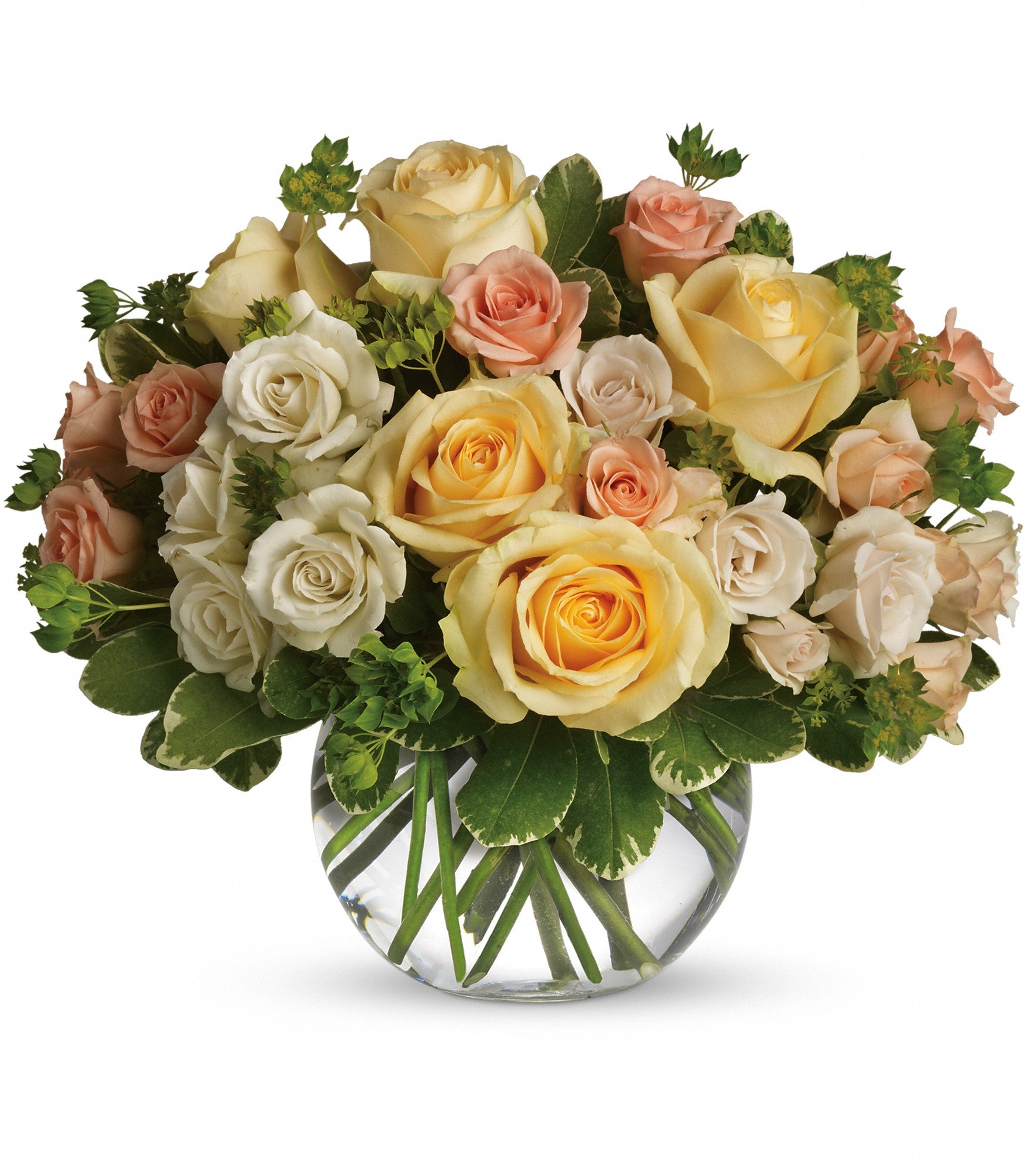 It will be a magic moment when this divine bowl of pastel roses is hand-delivered to someone special. Perfect for any occasion, the soft colors and variety of rose blossoms will soothe anyone's soul.